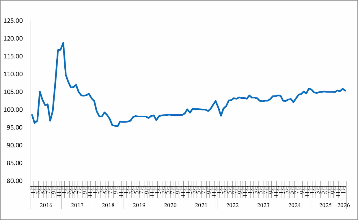 調査・データ中国物流購買連合会と中国物流信息中心が6日に発表した2月の中国道路物流運賃指数は105.3となり、前月比0.54%低下した。一方、前年同月比では0.46%上昇した。春節休暇や低温・降雪の影響で輸送需要と供給の双方が縮小し、市場の活発度が低下したことが背景とみられる。