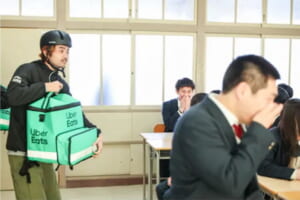 イベントは、卒業式を翌日に控えた同校3年生24人から「卒業前にクラス全員でUber Eatsを利用したい」との声が寄せられたことをきっかけに企画された。当日は人気クリエイターが配達パートナーに扮して学校を訪れ、地元飲食店のピザなどを生徒に届けた。生徒はアプリの注文画面を見ながら料理を注文する流れを体験し、教室で食事を楽しんだ。