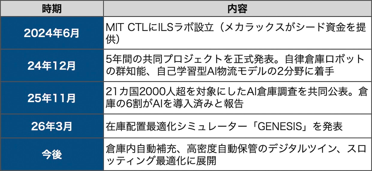 GENESISは、メカラックスとMIT CTLの共同研究から生まれた最初の具体的な成果物となる。両者の連携は2024年から急速に進んでおり、研究と産業実装の距離を縮めるペースが速い。