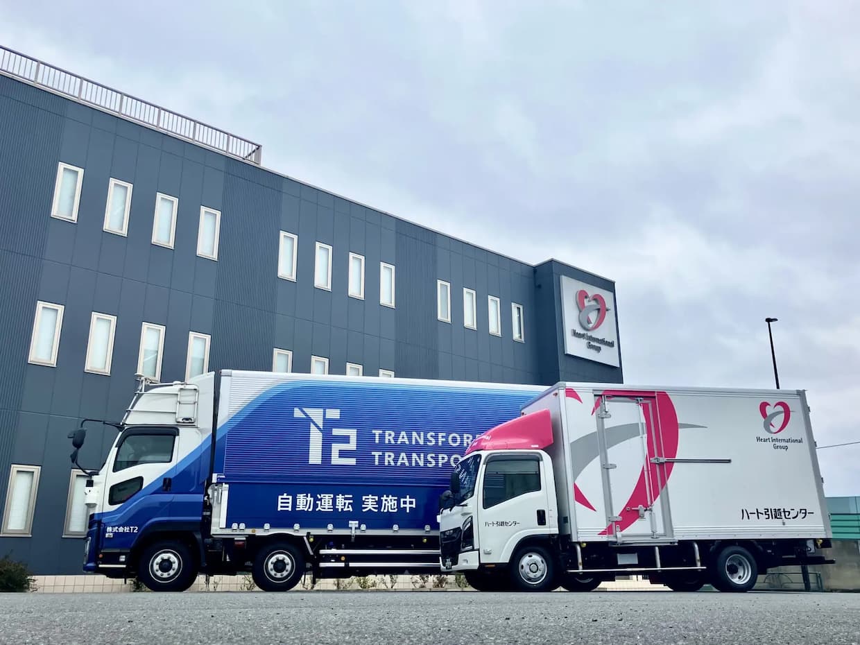 実証では、T2が商用運行で使用しているレベル2自動運転トラックを使用する。サカイ引越センターは4月4-5日に初回を実施し、東京レールゲートWEST(東京都品川区)-神戸六甲支社(神戸市)間の520キロを往復する。ハート引越センターは5月23-24日に初回を予定し、東京センター(東京都葛飾区)―大阪センター(大阪府摂津市)間の510キロで実証する。いずれも東名・綾瀬スマートインターチェンジから名神高速の区間を中心に440-450キロで自動運転を行う。