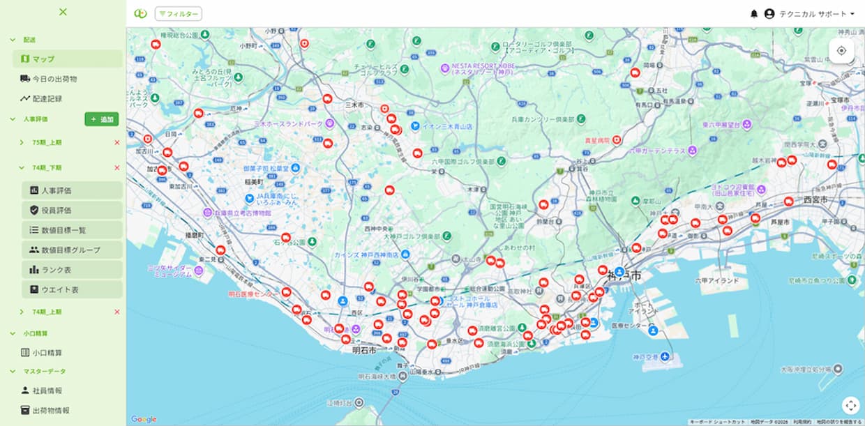 同機能はインテリア商社の山上の協力を得て開発した業務アプリ「Yamagami Growth App」に実装した。配送員の位置情報をリアルタイムで地図上に表示するほか、Google Maps APIを活用した配送ルート表示機能を備える。配送データを基にした日報作成機能や既存CSVデータとの連携にも対応し、配送状況の把握や業務記録の効率化を図る。