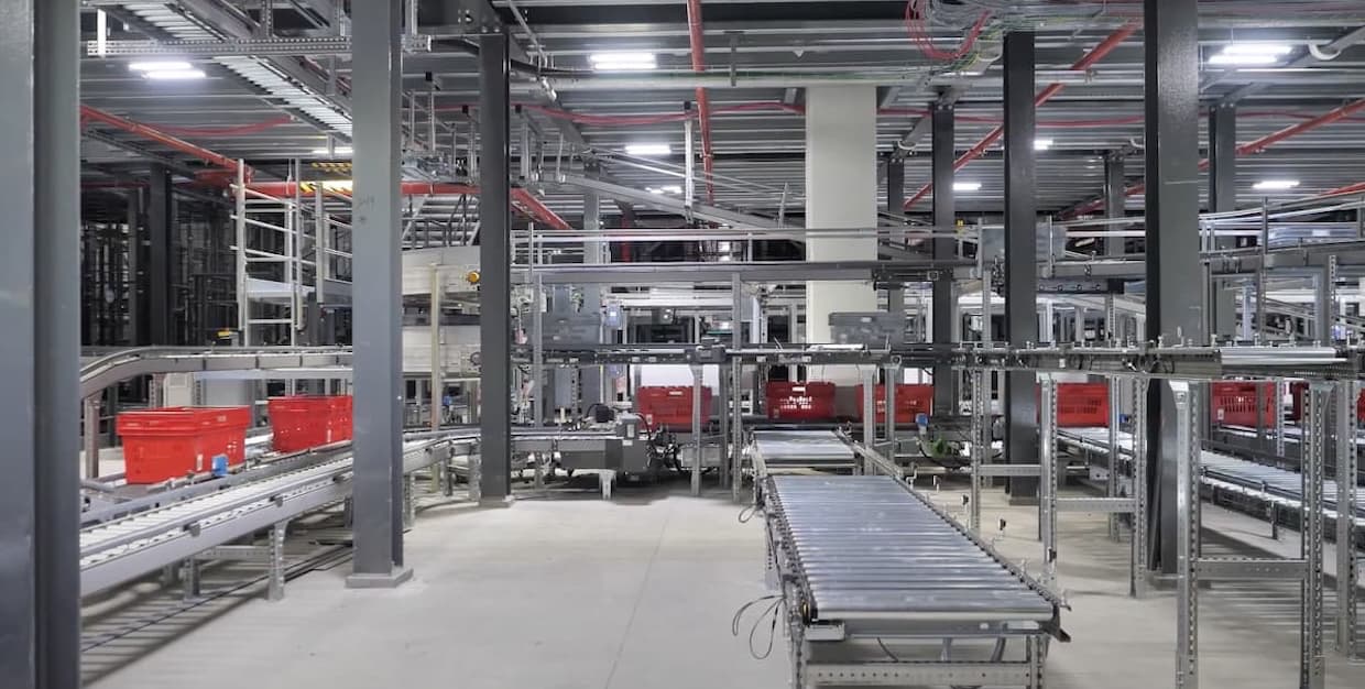 また、商品棚を作業者の元へ搬送するGTP方式に加え、注文ごとの集品箱をAGVで搬送するOTP方式を組み合わせることで、作業者の歩行や荷合わせ作業を削減する。さらにAIがオーダー投入順序や搬送ルートをリアルタイムに制御し、設備や作業者の待機時間を最小化する仕組みとした。