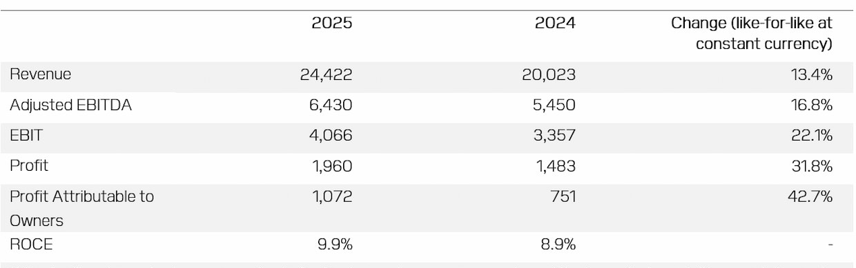 調査・データ港湾・物流大手のDPワールド(UAE)が12日発表した2025年通期決算は、売上高が前年比22%増の244億ドルとなり過去最高を更新した。調整後EBITDA(利払い前・税引き前・減価償却前利益)は同18%増の64億ドル、利益は32.2%増の19億6000万ドルとなり、港湾・ターミナル事業と物流事業の成長が業績を押し上げた。