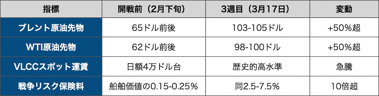 原油価格の上昇は、供給量の減少だけでは説明できない。保険料の高騰、迂回による航海日数の延長、滞船コストという「物流プレミアム」が、原油価格の上に積み重なっている。