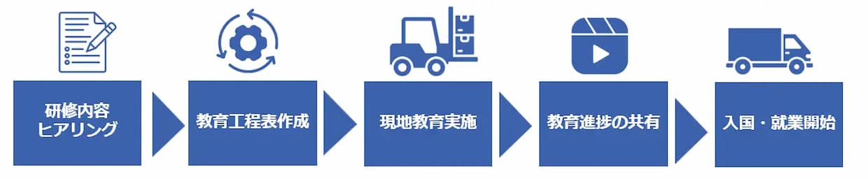 同サービスでは、入国前に合計80時間の実践教育を海外で実施する。企業の配送業務や作業工程を事前にヒアリングし、それぞれの業務内容に合わせた教育カリキュラムを設計する仕組みだ。研修内容はフォークリフト操作30時間、単独走行訓練30時間、伝票処理10時間、荷役作業10時間などで、日本の物流現場を想定した実務教育を行う。教育は日本人スタッフの監修のもとで実施し、進捗状況は動画やレポートで企業側に共有する。