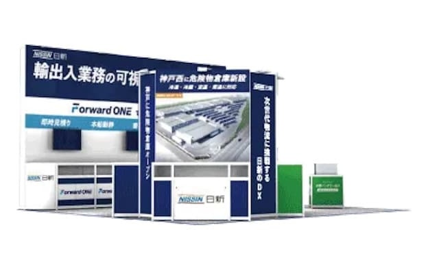 同社は「次世代物流に挑戦する日新のDX」をテーマに、輸出入業務の可視化・効率化サービス「Forward ONE」、リチウムイオン電池の循環物流ソリューション「LiBerth」、医薬品の温度管理輸送サービス、新設倉庫「神戸西危険物倉庫」、生成AIを活用した情報提供サービス「NISSIN AI BASE」の5つを展示する。