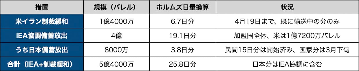 これらの措置を合算しても、供給の穴を埋めるには足りない。平時にホルムズ海峡を通過していた原油は日量2090万バレル(2025年上半期、EIA=米エネルギー情報局)だ。