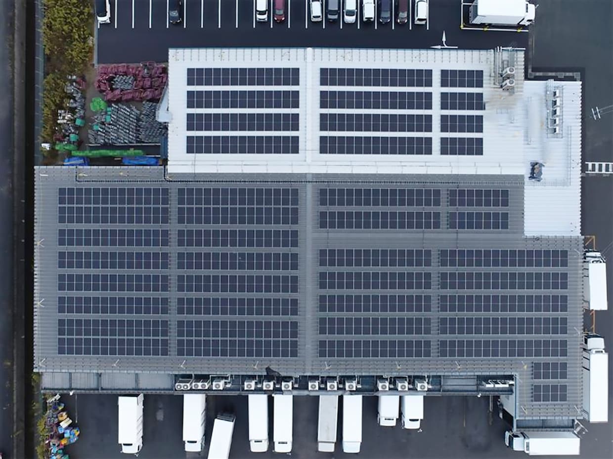 ▲太陽光パネルを設置した小牧物流センター(出所:ニチレイロジグループ)
