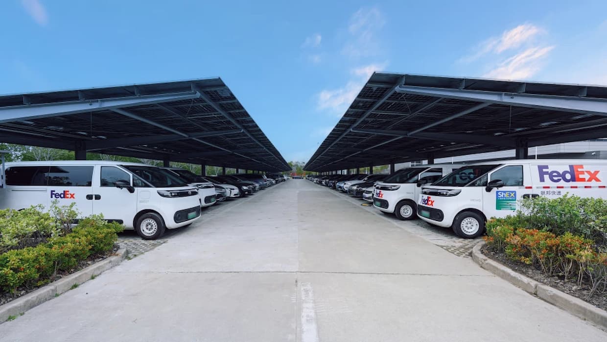 物流オペレーション全体での脱炭素化も進める。EV車両は世界で8000台を超え、中国では電動化率が25%を超えた。AI(人工知能)を活用した仕分けロボットや自動誘導フォークリフトの導入により、施設内の業務効率化も図っている。フェデックスは2040年までにカーボンニュートラルな事業運営の実現を目標に掲げており、これまでに世界30か所を超える拠点でオンサイト・オフサイト合計31ギガワット時を超える太陽光エネルギーを生み出している。