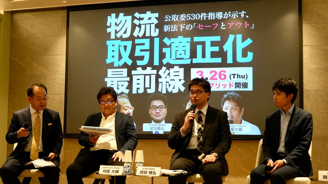 行政・団体LOGISTICS TODAYとHacobu(ハコブ、東京都港区)は26日、東京都内で「物流『取引適正化』の最前線」と題したハイブリッドイベントを開催した。公正取引委員会企業取引課の武田雅弘・執行連携担当企画官が基調講演に登壇し、2025年4月以降に運送分野で実施した集中調査で勧告2件、指導530件の措置を講じたことを報告した。パネルディスカッションでは、荷主が価格協議の面談に応じながら回答を保留し続けるケースについて、武田氏が「問題となりうる」との見解を示し、協議の形骸化に警鐘を鳴らした。