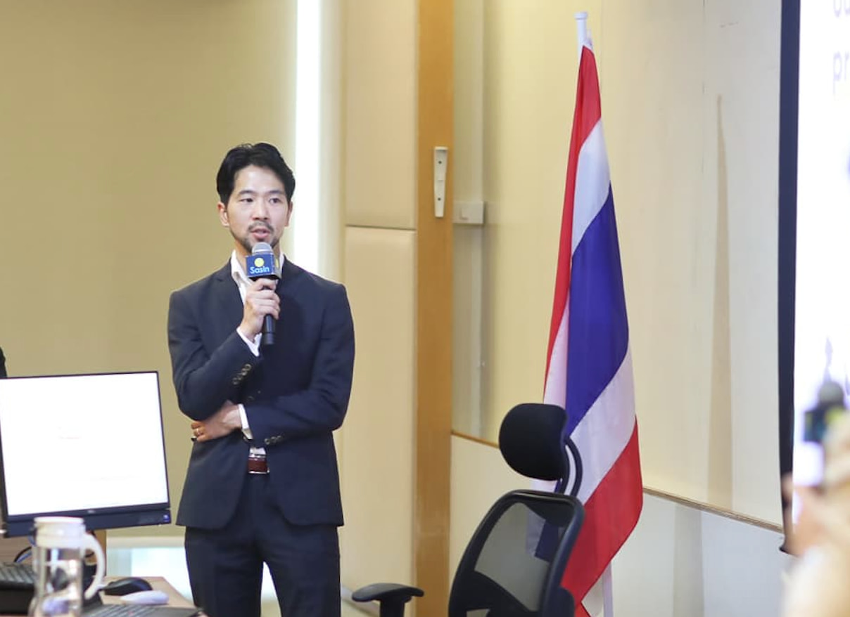 ▲APT APAC Regional Directorの岡田友宏氏、タイ・バンコクのサシン経営大学院にて開催された、APT主催の物流セミナーにて