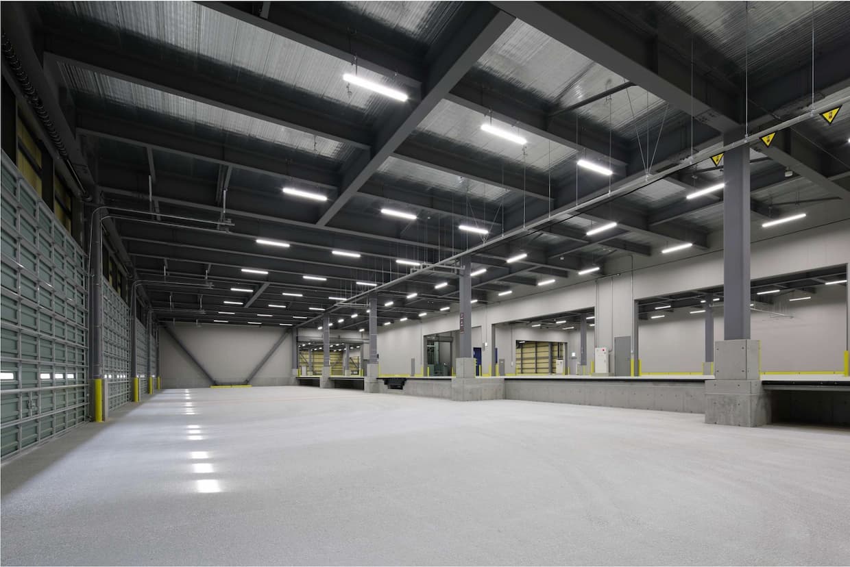 施設面では45フィートトレーラーに対応したバースを備え、待機場は大型3台、10トン車3台分を確保。場内動線は一方通行とし、安全性と処理効率の両立を図る。床荷重は1平方メートルあたり1.5トン、有効高5.5メートルとし、荷物用エレベーターや垂直搬送機、ドックレベラーを各2基設置するなど、汎用性の高い仕様とした。ドライバー用の休憩スペースやトイレも整備し、労働環境にも配慮している。