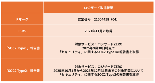▲ロジザードの認証取得状況(出所:ロジザード)