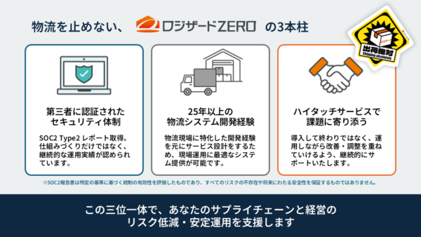 WMSは導入して終わるシステムではない。止まれば物流が止まり、商売が止まる。その前提に立てば、問われるのは機能や価格ではない。停止リスクを低減し、被害を最小化するためのセキュリティ体制をどれだけ構築しているか、そして万が一止まった時にどう動くかまで設計されているかどうかだ。