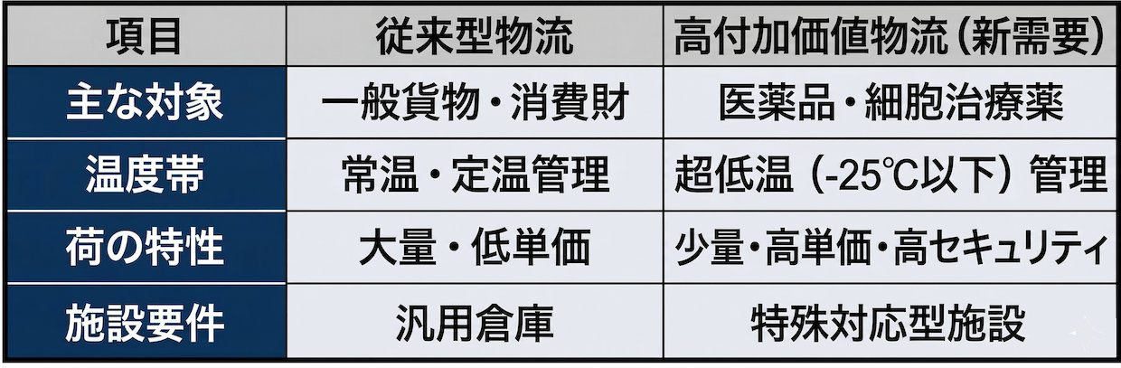 医薬品・バイオ関連の高付加価値物流は、温度管理、セキュリティ、トレーサビリティの面で、一般貨物とはまったく異なる要件を持つ。柏の葉エリアへの先端産業の集積が進むほど、こうした特殊物流の需要は拡大し、対応できる施設や事業者の希少性と付加価値は高まっていく。