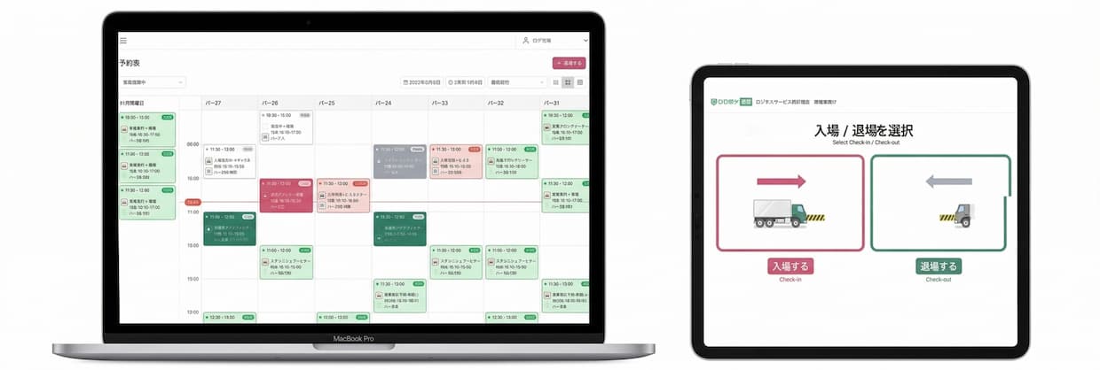 ▲ロジポケ「バース管理」画面の例。管理はパソコンから、入退場はスマホ、タブレットから直感的に操作が可能