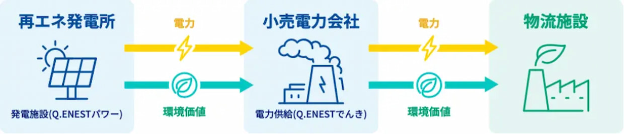 荷主Q.ENESTホールディングス(東京都港区)は4月1日、子会社を通じてECロジスティクス企業の中部エリア物流拠点向けに、オフサイトPPAと高圧電力を組み合わせた電力供給を2月1日から開始したと発表した。