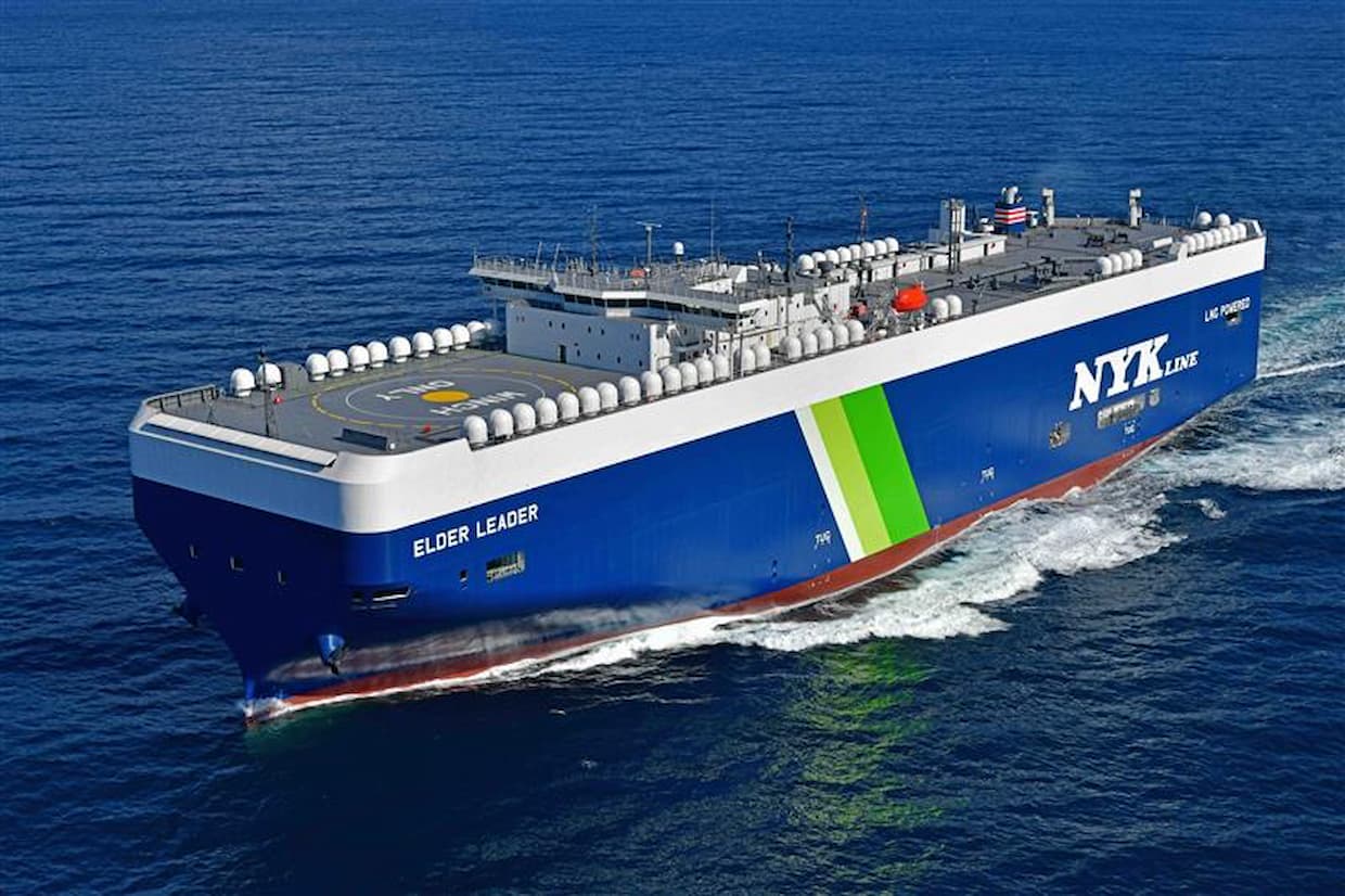 ロジスティクス日本郵船は7日、3月31日に新来島どっく(東京都千代田区)が建造したLNG(液化天然ガス)燃料自動車専用船の完成にあわせ、愛知県の新来島豊橋造船で命名式を実施したと発表した。本船はタダノ(香川県高松市)によって「Elder Leader(エルダー・リーダー)」と命名された。