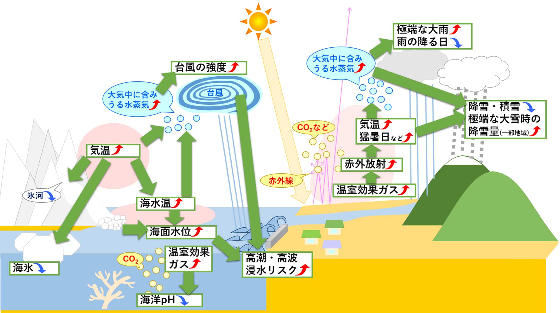 ▲気候変動に関する各要素の変化の関係の概要(出所:気象庁)