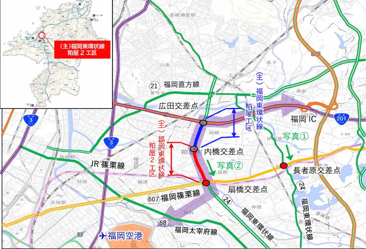 行政・団体福岡県は8日、県道福岡東環状線の粕屋2工区(内橋交差点-扇橋交差点)について、国土交通省の補助事業に採択されたと発表した。