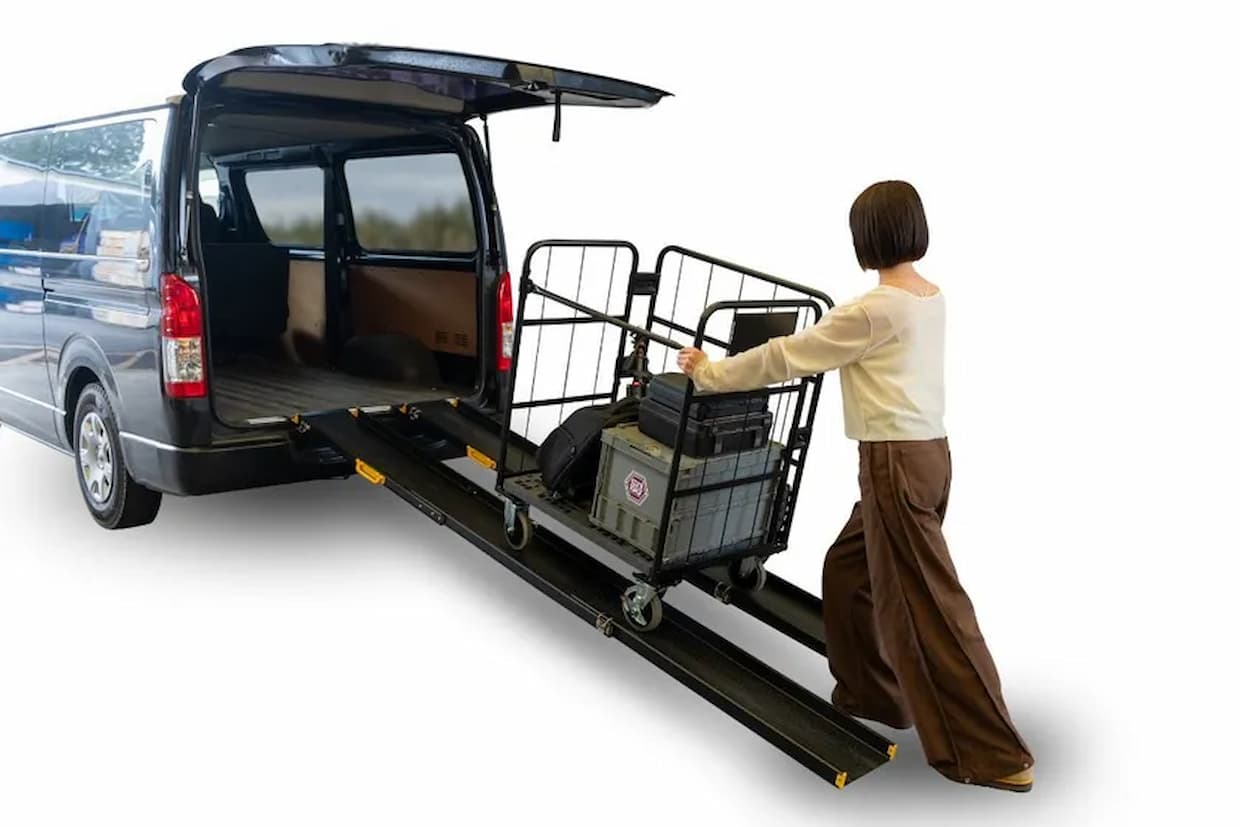 サービス・商品五常は9日、機材を載せたカゴ台車のままバン型車両に積み込める車両積込スロープ「バンロード」を4月20日に発売すると発表した。本社は千葉市。税込み価格は9万9800円。