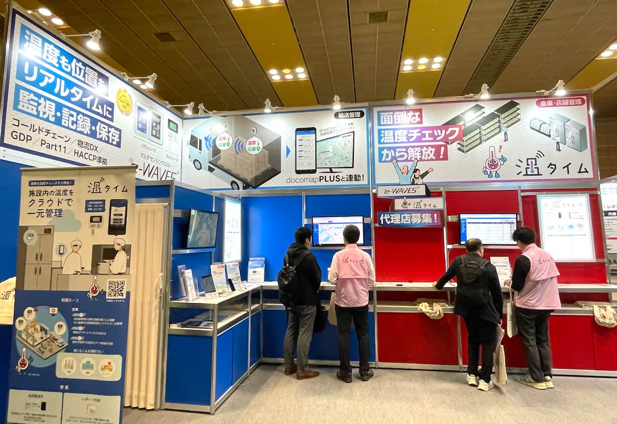 主な出展ソリューションは、次世代型マルチセンシングロガー「e-WAVES」を軸とした温度管理関連サービス群である。このうち温タイムは、2025年10月にリリースした定置向け温度管理ソリューションで、物流展には初出展となる。定置時の温度や湿度などの環境情報を最短1分間隔でクラウドに送信可能で、送信したデータは、GDPやHACCPに準拠したウェブシステムでリアルタイムに確認、レポート出力にも対応する。閾値を外れた際のアラート機能も備え、食品や医薬品など厳格な温度管理が求められる現場での活用を見込む。 同社では、「DoCoMAP」との連携による輸送温度管理と位置情報の一元管理を訴求してきたが、新たに定置向けでも同一のクラウド上で管理し、より緻密な品質管理をわかりやすく、手軽に行うことができる。