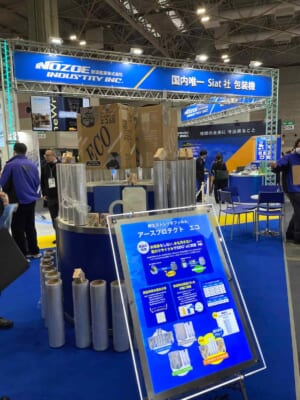 イベント野添産業(大阪府東大阪市)は8日から10日まで、インテックス大阪(大阪市住之江区)で開催されている「第7回関西物流展」に出展し、再生原料80%使用を実現した同社のストレッチフィルム「アースプロテクト」を紹介し、環境負荷低減と現場での使いやすさを両立する包装資材として訴求している。