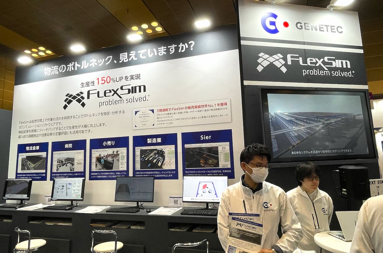 イベントゼネテックは8日から10日まで、インテックス大阪(大阪市住之江区)で開催された「第7回関西物流展」に出展し、同社の物流現場の人・モノのレイアウトや動きを3Dモデルで再現し、稼働率・処理能力を数値やグラフで可視化する3Dシミュレーションソフトウエア「FlexSim」(フレックスシム)を紹介した。