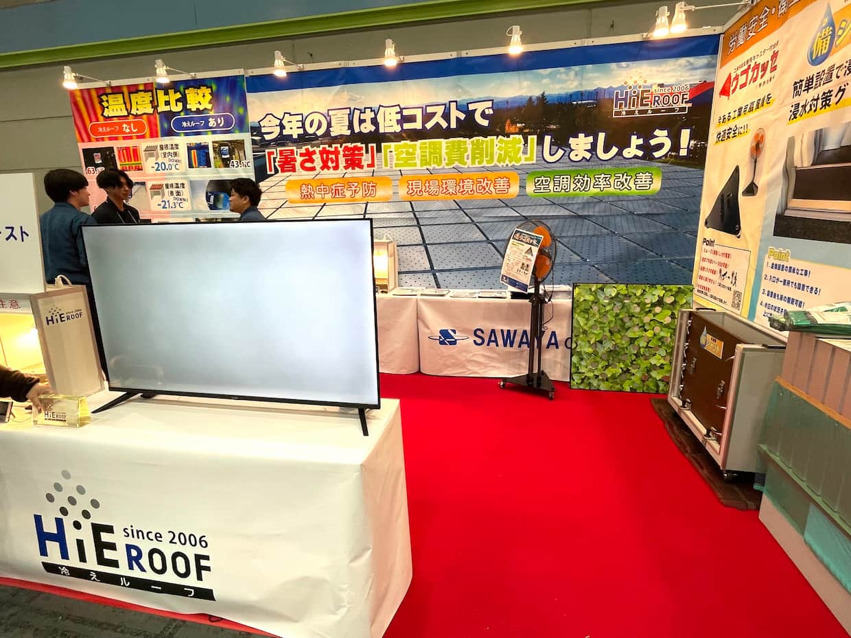 イベントサワヤ(名古屋市守山区)は8日から10日まで、インテックス大阪(大阪市住之江区)で開催された「第7回関西物流展」に出展し、同社の屋根用遮熱シート「冷えルーフ」を紹介した。倉庫や工場の暑熱対策を低コストで実現するツールとして訴求している。