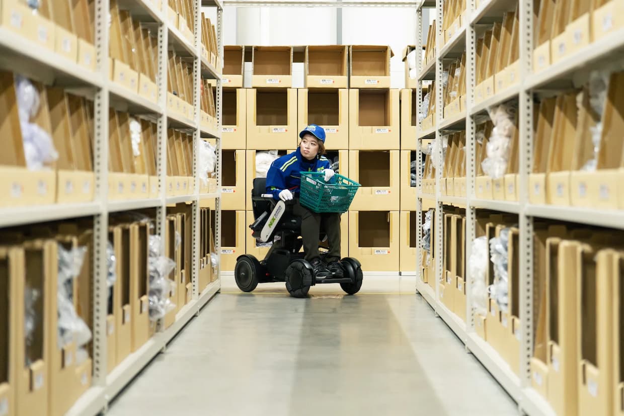 ▲倉庫内で電動モビリティ「WHILL」を活用してる様子(出所:WHILL)