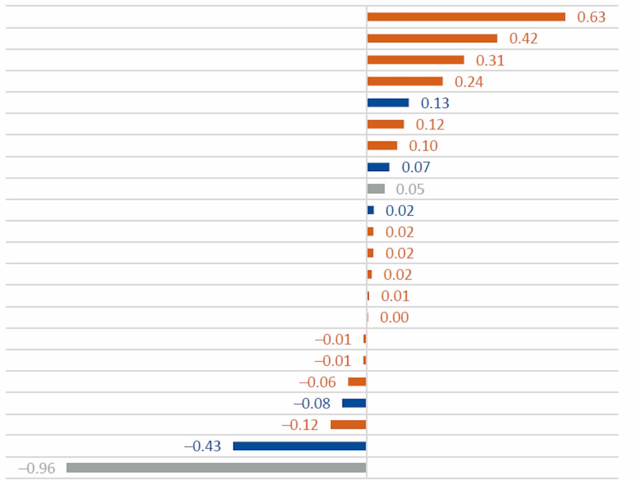 卸売が0.63ポイントのプラス寄与となったのに対し、輸送・倉庫は0.12ポイントのマイナス寄与となった。需要の質的変化や在庫調整、輸送需要の一巡などが背景にあるとみられる。景気減速とともに、物流の稼働は選別的な動きが強まっている。