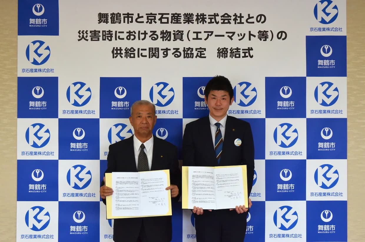 本協定は、避難所における生活環境の向上を目的としたもので、大規模災害発生時にエアーマットなどを迅速に供給する体制を整備するもの。市の要請に基づき、京石産業が保管するエアーマット6000個とエアーポンプが指定場所へ輸送される。
