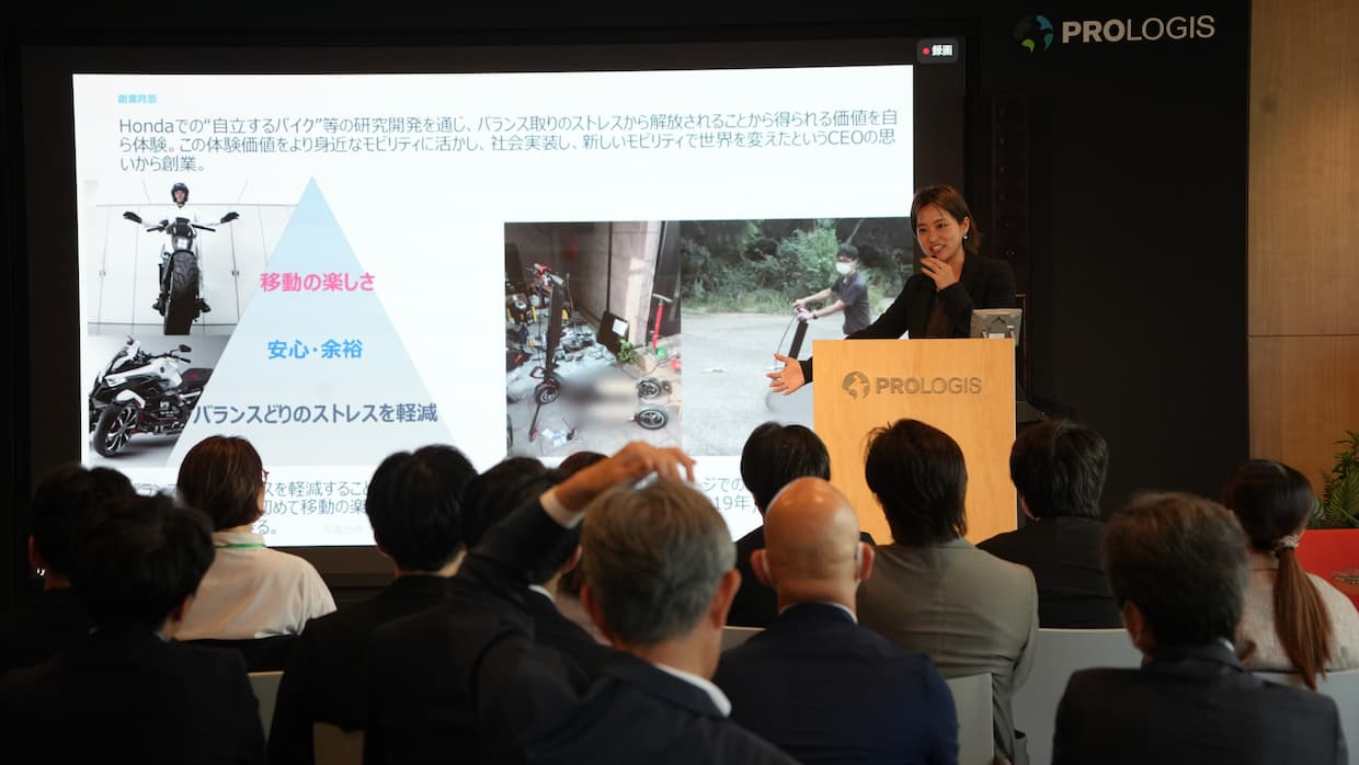 開会の挨拶に立ったプロロジス上席執行役員の中村明生開発本部長は、日本国内で25年以上にわたり600万平方メートル超の物流施設を提供してきた実績に触れつつ、自社の現在地を語った。「単にスペースを提供するだけでなく、コンサルティングを通じて何らかのソリューションを提供できないかと模索してきた」。その結節点となるのが、2023年開設のインキュベーション施設「イノベースつくば」(12社入居)と、24年開設の「イノベース東京押上」(6社入居)だ。