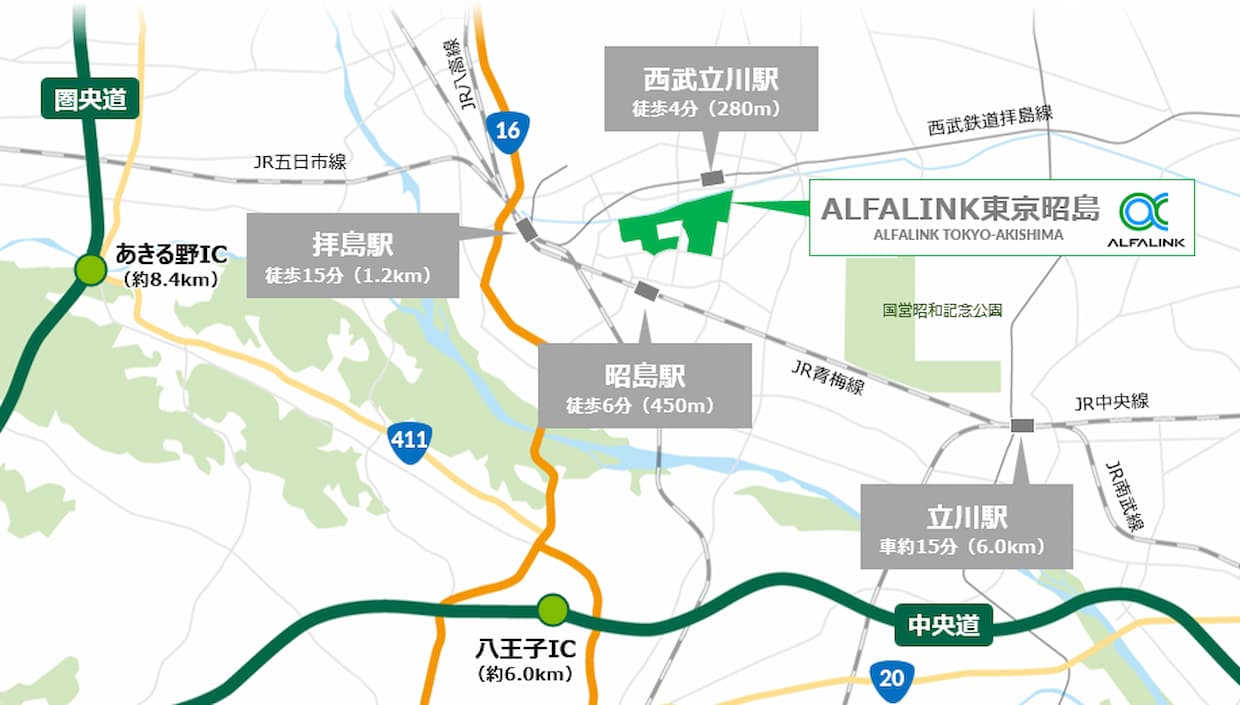 同プロジェクトは総敷地面積52万5000平方メートルに物流施設3棟と地域貢献棟などを整備する計画で、2028年から29年にかけて順次完成する予定。昭島市は研究開発拠点が集積する地域であり、同施設では物流拠点を起点に人・モノ・情報を集約し、次世代型の産業・イノベーション拠点としての役割も担う構想だ。