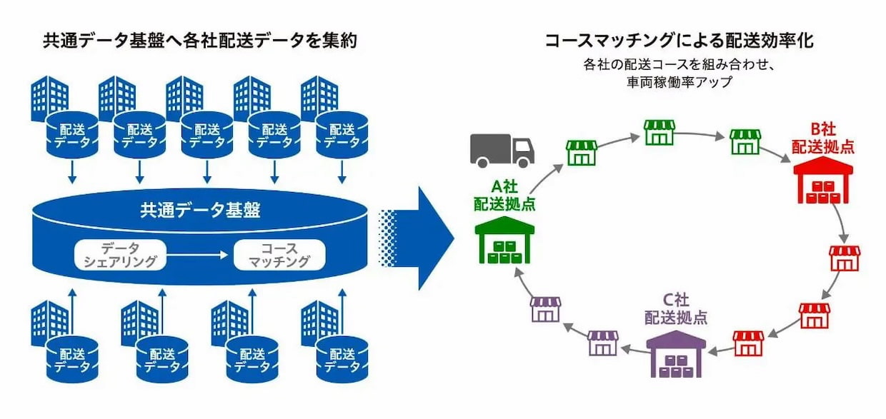 コンソーシアムでは、データ基盤とコースマッチングツールを活用し、従来の経験や属人的判断に依存していた配車計画をデータドリブンに転換する。積載率や車両稼働率の向上を通じて、トラック台数削減と収益性改善の両立を目指す。また、競争法に配慮したデータガバナンスの枠組みを整備し、企業間連携の前提条件も明確化する。
