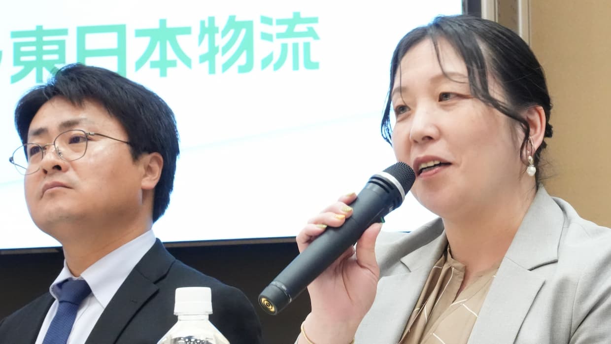 ▲(左から)ジェイアール東日本物流企画本部品質サービス改革部次長グループリーダーの山崎俊佑氏、同営業本部列車荷物輸送ユニットマネージャーの安助里栄氏