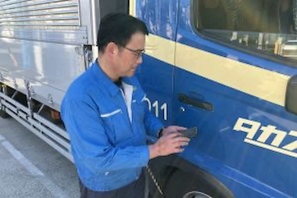 ▲スマートフォンを活用し、安全教育コンテンツを確認するドライバー(出所:高末)