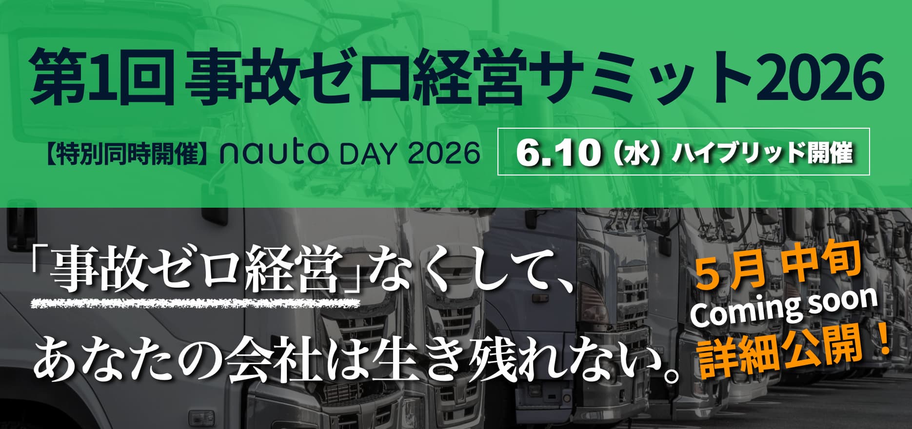 「第1回 事故ゼロ経営サミット2026」は、その問いに「AI×データ」の最前線から答える場。 国土交通省の最新政策動向、業界トップランナー企業の生の実践知、 そして世界を変えるテクノロジーが一堂に会する—。 詳細は5月中旬に公開予定。ぜひ、お見逃しなく。
