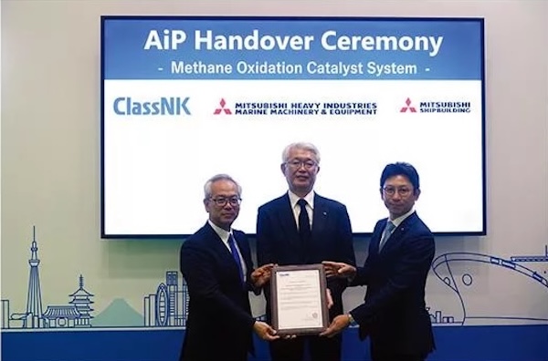 認証・表彰三菱重工マリンマシナリ(長崎県長崎市)と三菱造船(東京都港区)は22日、舶用LNG(液化天然ガス)燃料エンジン向けメタン酸化触媒装置について、日本海事協会から基本設計承認(AiP)を取得したと発表した。