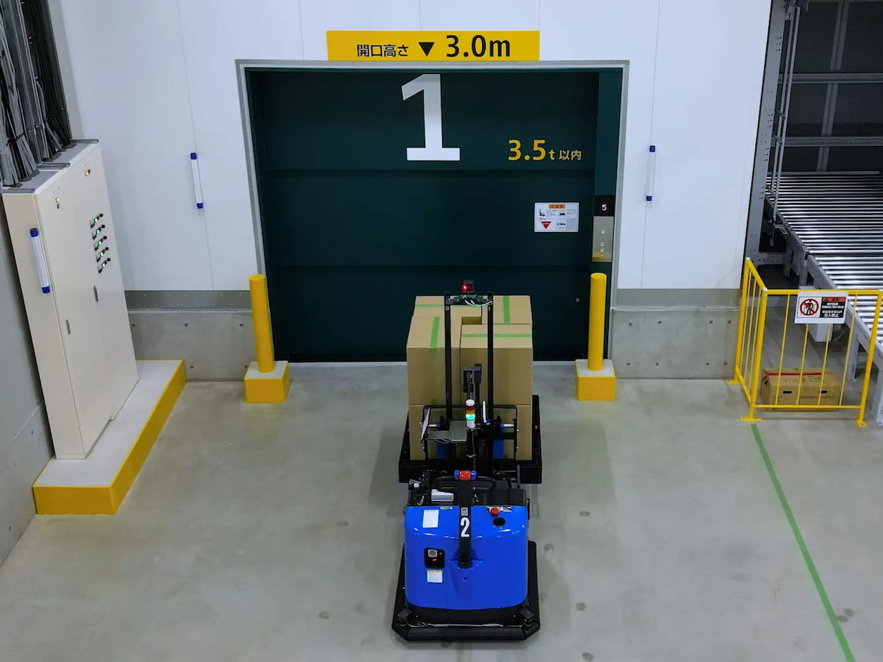 ▲エレベーターと連携するAutoFork(出所:ハクオウロボティクス)
