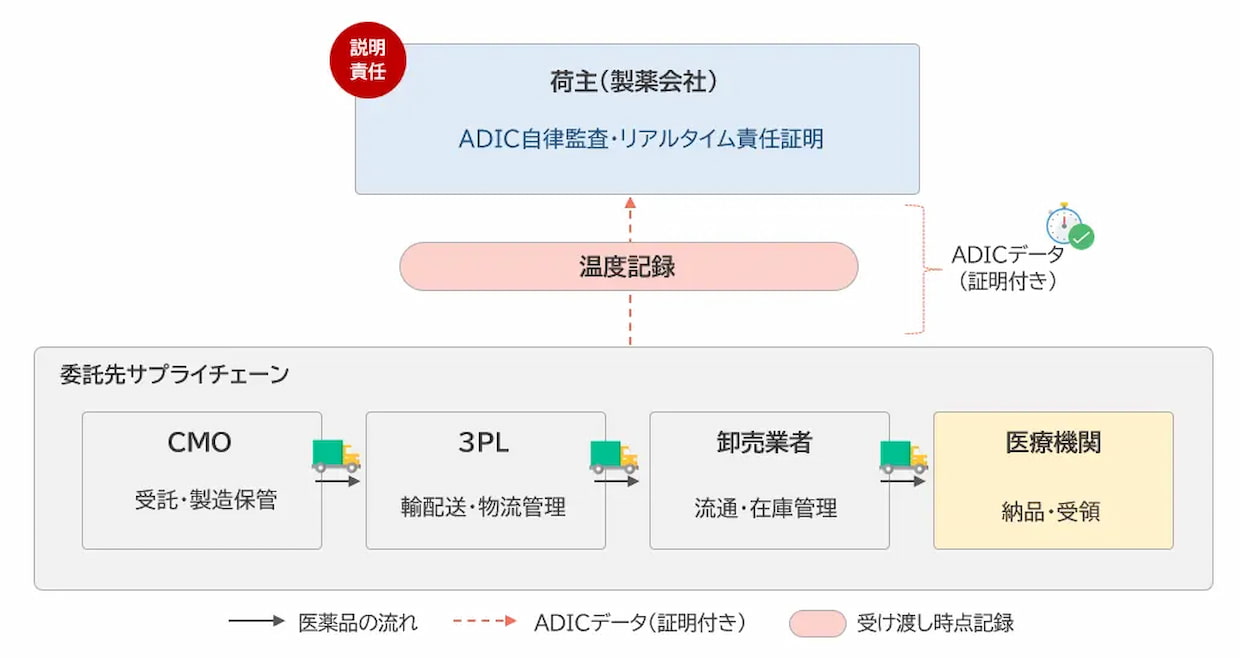 医薬品物流ではGDPガイドラインにより温度管理や記録の厳格な運用が求められるが、複数事業者をまたぐサプライチェーン全体での管理状況を荷主が客観的に証明する仕組みは整っていない。両社は、オンザリンクスが物流プロセス設計を担い、GhostDriftが数理的に検証可能な証明技術「ADIC」を適用することで、温度逸脱時の判断経緯や責任所在を第三者検証可能な形で記録・提示する仕組みの構築を目指す。