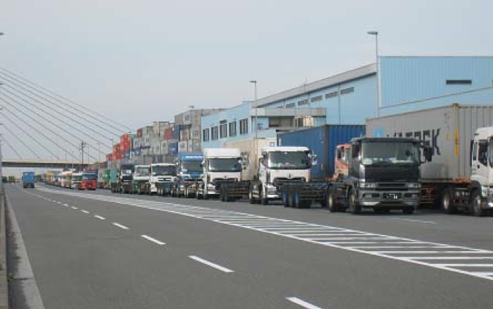 国交省では、国際コンテナ戦略港湾のコンテナターミナル周辺の渋滞緩和対策として、ITを活用した効率的なコンテナ搬出入の実現を目指し、横浜港で、コンテナ搬出入予約制の導入を検討。昨年7月には2か所のターミナルでプレ実証実験を行い、予約制の仕組みの検討に必要な基礎データを収集していた。