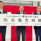 野村不動産は5日、愛知県東海市、大府市と防災協定を締結し、同社最大規模の物流施設「Landport東海大府I」で防災協定締結式と施設内覧会を開催した。 Landportシリーズ36…